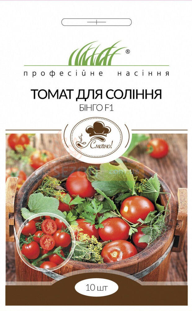 Бінго F1 - ранній гібрид томата детермінантного типу. Вегетаційний період 100-105 днів. Рослина формує потужний кущ закритого типу. Плоди яскравого, насиченого червоного кольору, слівовідной форми, масою 80-90 м Мають бездоганним товарним виглядом, добре відділяються від куща з плодоніжкою. Дружне дозрівання, висока транспортабельність, стійкість до стресів. Рослина не скидає квіти і зав'язь. Гібрид томата Бінго F1 призначений для відкритого грунту. Чудово підходить для механізованого прибирання.