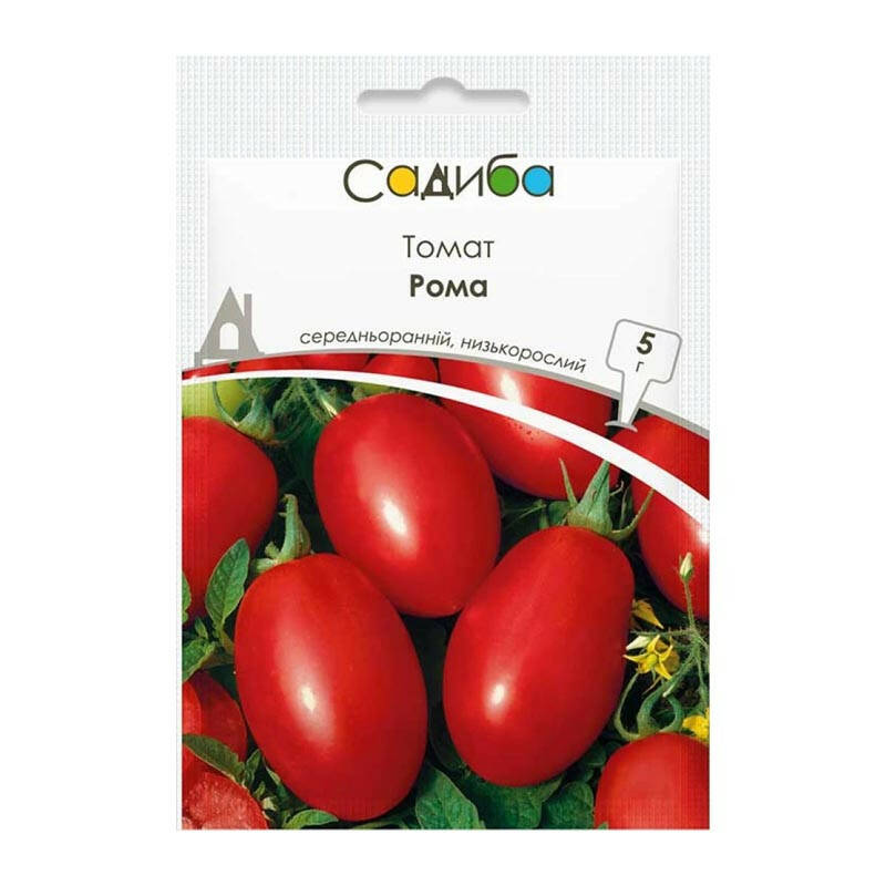 Рома - сорт, який відзначається одночасним достиганням плодів. Рослина не потребує підв’язування. Плоди - сливки червоного кольору, щільні, м’ясисті, високоякісні. Сорт універсального призначення та стійкий до комплексу хвороб.