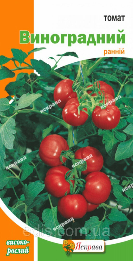 Томат Виноградний 0,1 гДавно було відмічено, що дикорослі помідори хоч і дрібні, але відрізняються особливо солодким смаком, а також стійкістю до хвороб. Томат Виноградний – це сорт, в якому втілені ідеї можливості вирощування безлічі мініатюрних помідорів на кисті. Такі «виноградини» або «оливки» (по 10-30 г) сподобалися не тільки шеф-кухарям, покупців у супермаркетах, але і звичайним городникам. Помідор Виноградний використовується для приготування незвичайних страв, цікаво виглядає в банку, його дуже люблять діти. Він має щільну шкірку, солодкий смак, містить мало води. Для успішного його вирощування слід враховувати, що: це високорослий сорт. 1,5 м – це не межа, може зростати і до 2 м; кущ має кілька стебел. Оптимально залишити 2-3 втечі; томати зав'язуються на численних довгих гілках по 20-30 штук, збір яких потребує особливого терпіння. Купити насіння помідора Виноградний пропонує компанія «Едіс».