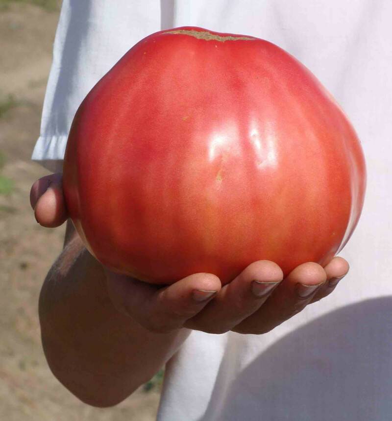 Середньоранній (105-115 днів) крупноплідний сорт. Рослина високоросла (1,5-2 м), формує великі плоди серцевидної форми масою 250-500 г, з м’ясистою та солодкою м’якоттю. Сорт відносною стійкий до фітофторозу. Призначений для вирощування з використанням шпалери або кілків, при обов’язковому пасинкуванні та прищипуванні над 14-15 листком. Урожайність – 3-5 кг з рослини. Відмінний салатний томат.