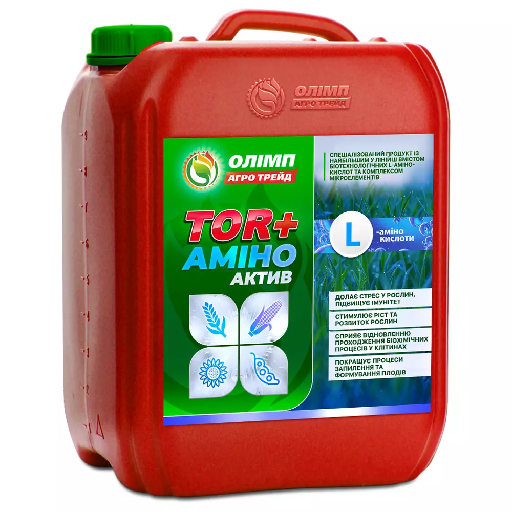 ТОR+Аміно Актив - рідке концентроване добриво з потужною антистресовою та стимулюючою дією на рослину. Містить у своєму складі вільні амінокислоти, які швидко проникають у клітини та стимулюють зростання за рахунок активації обмінних процесів, регулюють гормональний баланс, покращують запилення та зав'язування плодів та сприяють стійкості рослин до стресів.