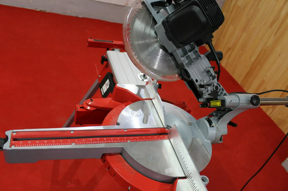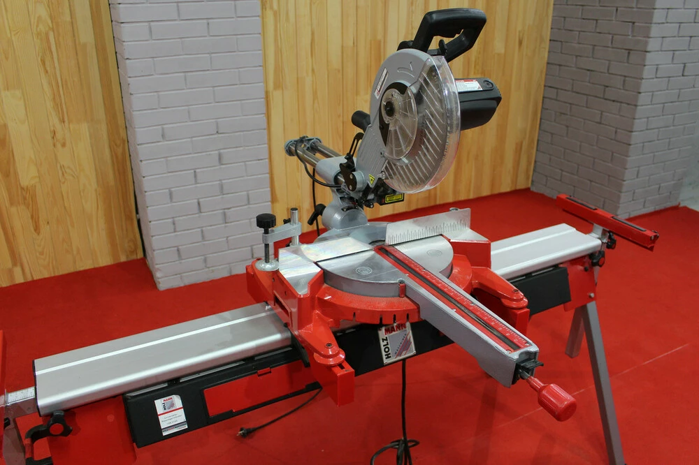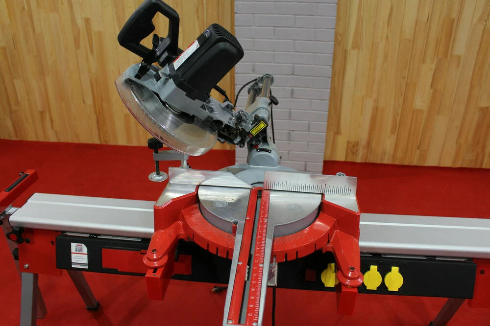 Помещается вверх до 430 мм.Наклоняется на (-45/+0) и вращаеться (-45/+45).Лазер точно отмечает линию резки.Очень легко движется и точно позиционируется двойной направляющей.Стойка из литого под давлением алюминия.