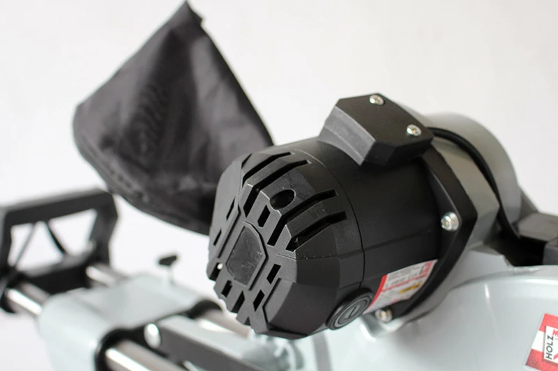 Пила подключается к стандартной электросети с напряжением в 230 В и частотой тока 50 Гц. Надежный двигатель рассчитан на ежедневные нагрузки с большим запасом мощности, потребляемая мощность составляет S1 1.7 кВт S6 1.9 кВт, что говорит о высокой экономичности станка. Причем скорость вращения достигает 3800 обмин, высокий показатель для торцовки.