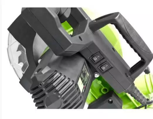 5000 об/мин режущего диска обеспечивают чистое и ровное пиление без брака;пильный узел наклоняется под углом 45 град., что гарантирует выполнение углового распила;лазерная разметка облегчает позиционирование и отвечает за точность хода пилки;видимость улучшает встроенная светодиодная подсветка;мощный двигатель справляется с разными по твердости древесными породами;глубина реза составляет 65 мм для работы с крупными элементами.