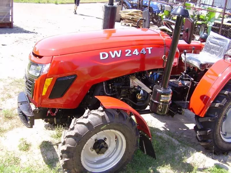 DW 244T це недорогий 24х сильний повнопривідний мінітрактор . На дану модель було встановлено гідравлічне рульове керування, для більш легкого управління даними агрегатом. Завдяки трьом циліндрах і водяному охолодженню, даний двигун легко виконує польові роботи з різними видами навісного обладнання з обробітку грунту, посадці, збору сільгоспкультур і догляду за ними в тяговому класі 0,6. А наявність великих коліс і високого дорожнього просвіту, провідного переднього моста і блокування диференціала - цього трактора підвищили не тільки тягові зусилля, але і підвищилася його прохідність в болотистих місцях.