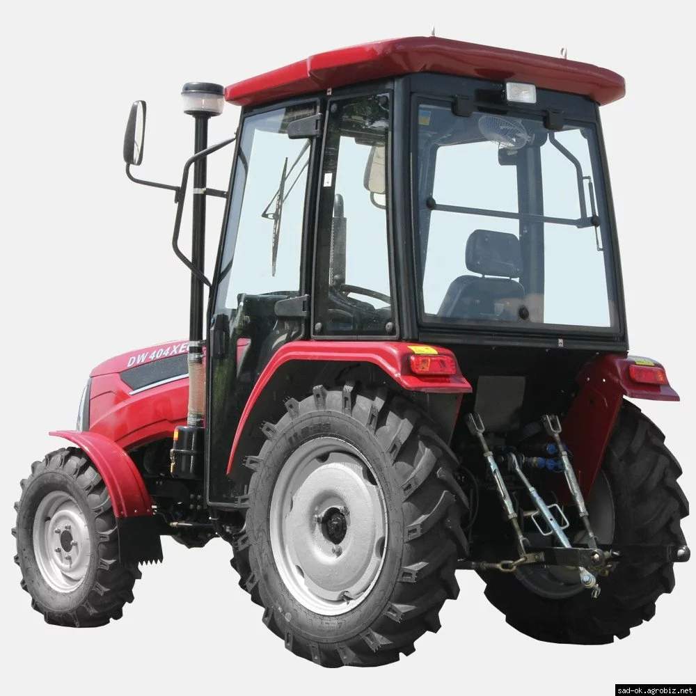 Новый профессиональный полноприводный универсальный трактор мощностью 40 л.с. с просторной и комфортной кабиной, по конструкции, комплектации и функциональности аналогичен трактору DW 404ХЕ – тоже имеет модернизированную коробку передач с формулой скоростей 8+2. Кабина такая же, как на тракторе DW 404ХPC: удобная, герметичная, с круговым остеклением и системами обеспечения микроклимата, автомагнитолой, дополнительными фарами, комфортным регулируемым креслом с ремнем безопасности, подлокотниками и подголовником.