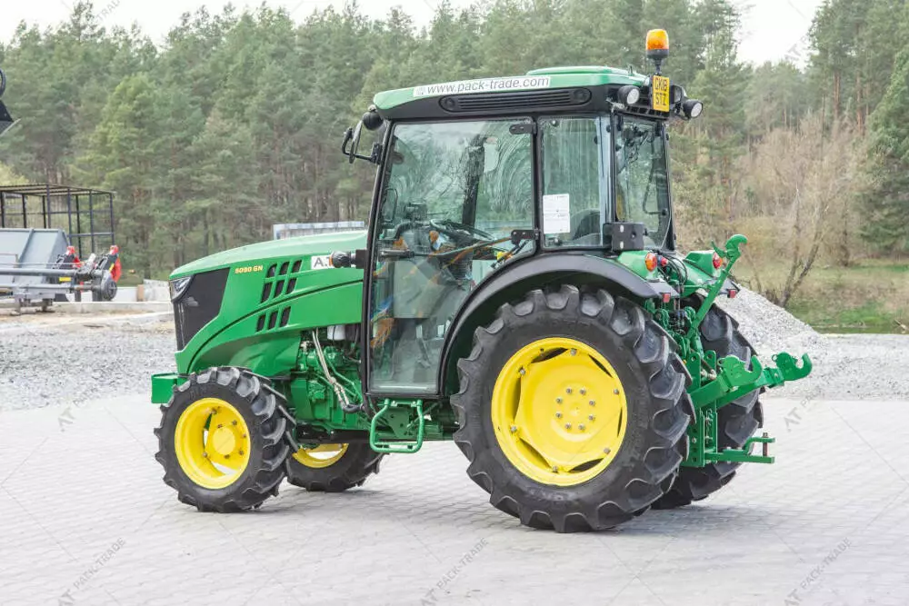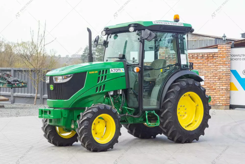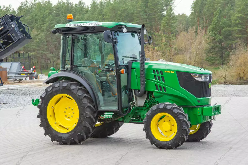 Дизельний трактор б/в John Deere 5090 GN, 2017 р/в, з напрацюванням 3505 м/год. Кондиціонер, 3 пари гідровиходів задніх, дублювання гідровиходів з правого боку для допоміжного обладнання, задня навіска 2 категоріі, задній ВВП. Шини передні – 280/70R18, задні – 340/85R28.