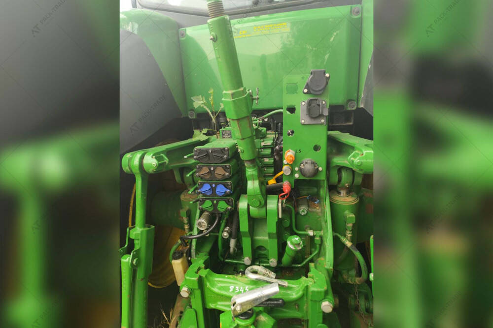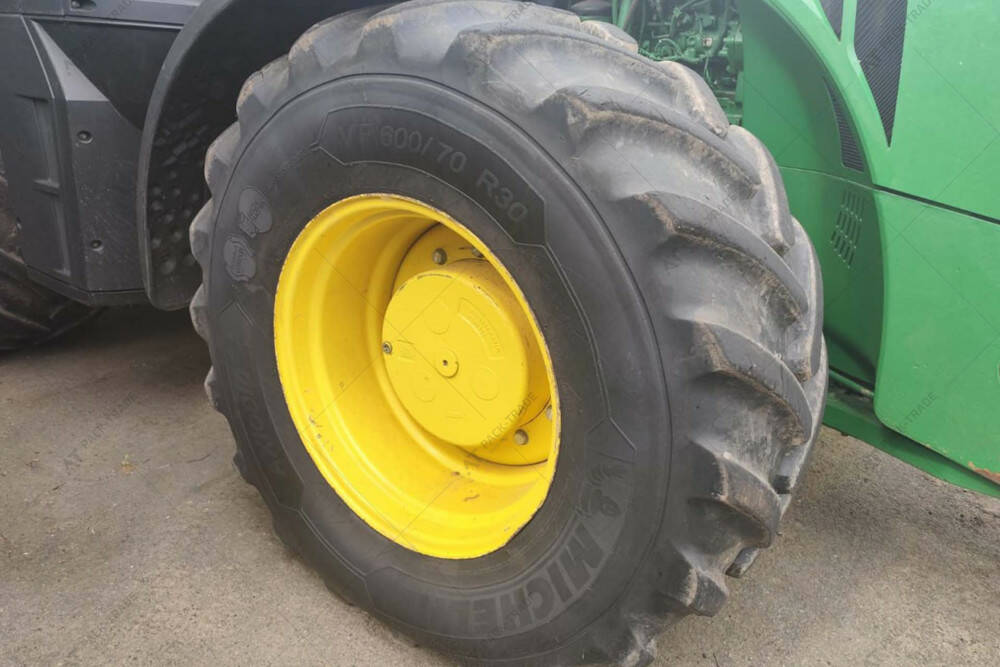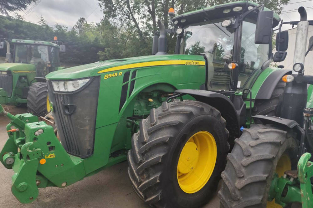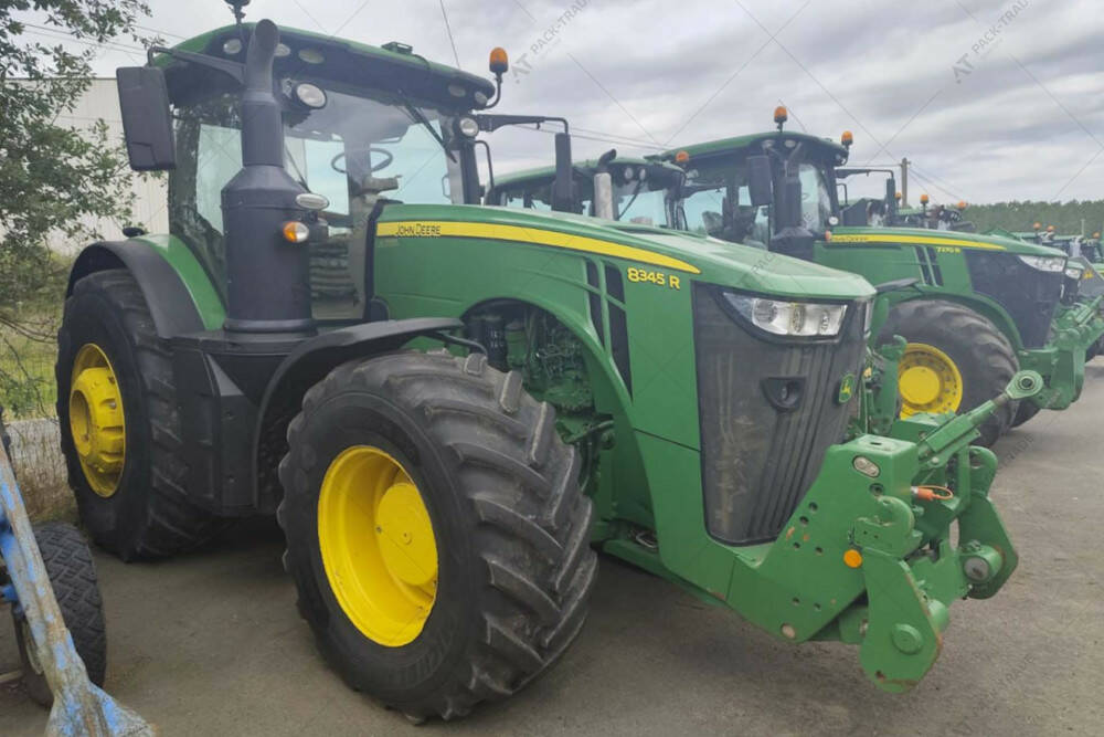 Дизельний трактор б/в John Deere 8345R, 2020 р/в, з напрацюванням 4938 м/год. Двигун – 345 к.с. КПП-Е23. ISOBUS. PowrBeyond. Гідравлічні гальма. Передня навіска. 4 пари SCV. Кліматконтроль. BOM 1000 та 1000 Е. Лінія вільного зливу спереду. Двірники справа. Розмір шин: передні 600/70R30, задні 650/85R38.
