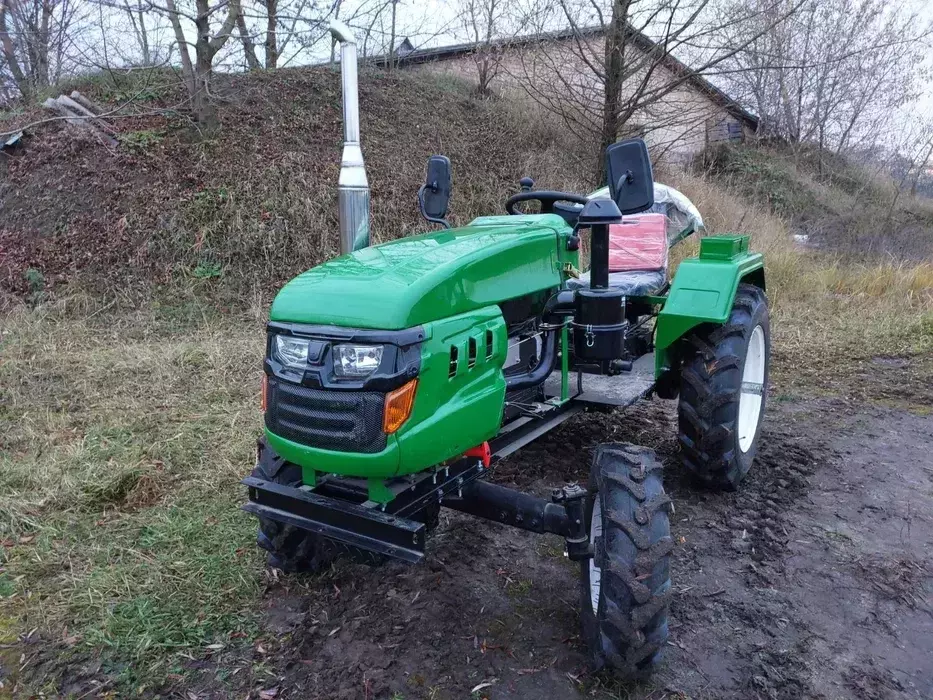 Колісна база мототрактора – це передні шини розміром 6.00-12 та задні – 9.50-16. Протектор досить глибокий для легкого руху на різних ґрунтах, на нерівномірному рельєфі. Для захисту оператора від попадання бруду на робоче місце на передніх крилах встановлені гумові бризковики.