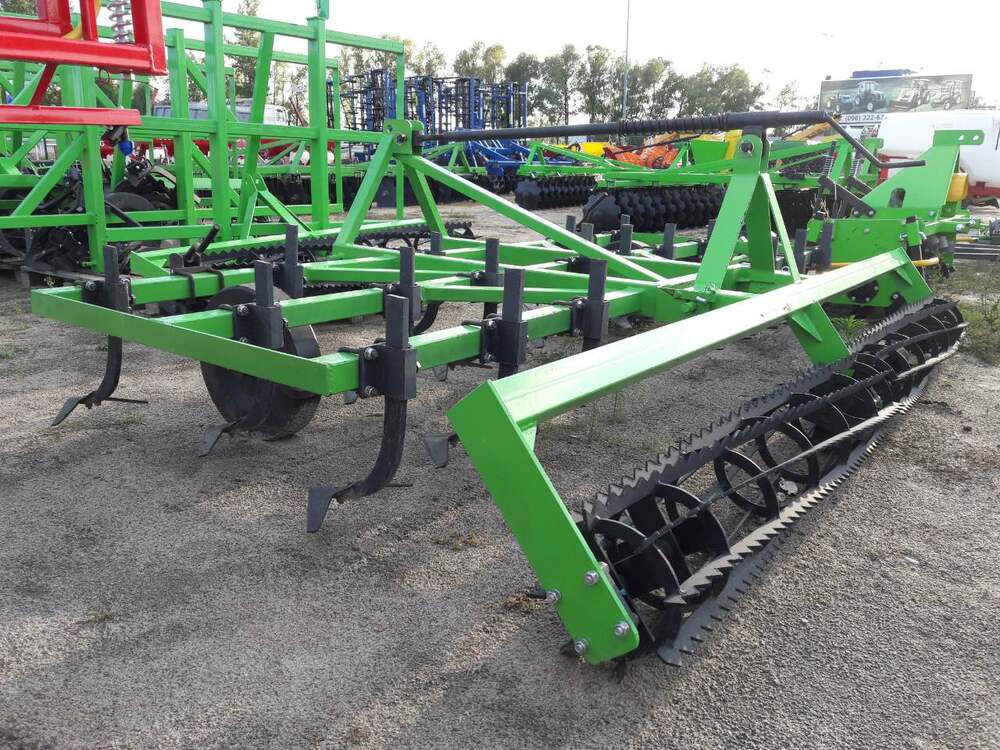 В предложении доступны культиваторы с креплением пружинных стоек при помощи устанавливаемых накладок. Стойки культиватора креплятся на раме в 3 ряда на расстоянии 140 мм и окончены легко заменяемыми рыхлительными долотами. Основным оборудованием культиваторов являются два опорные колеса, устанавливающие глубину работы.