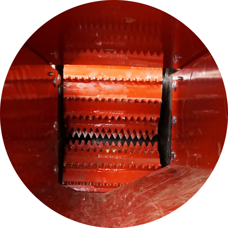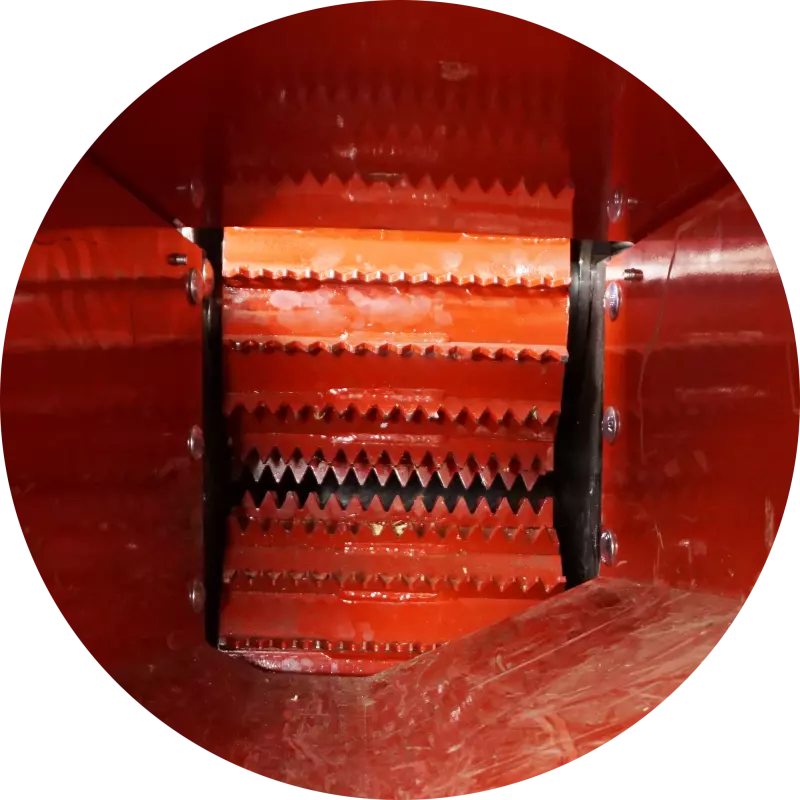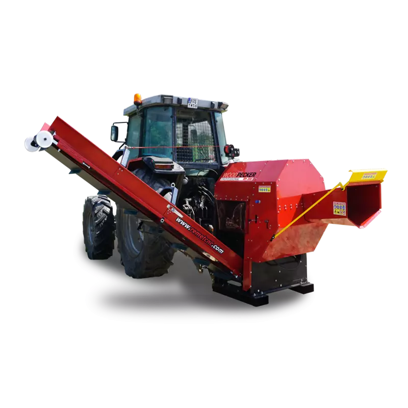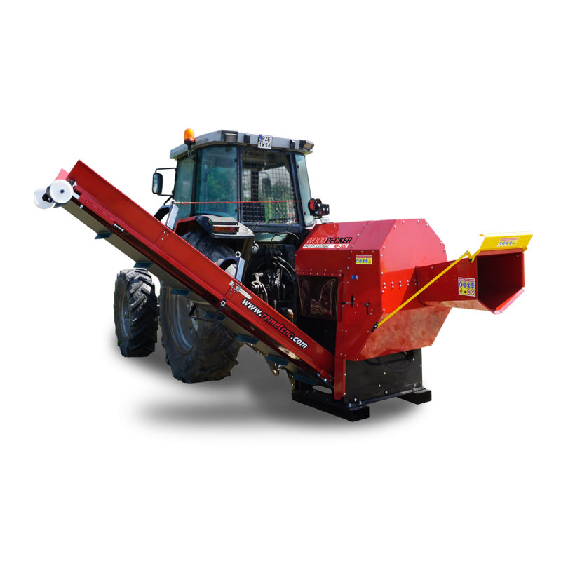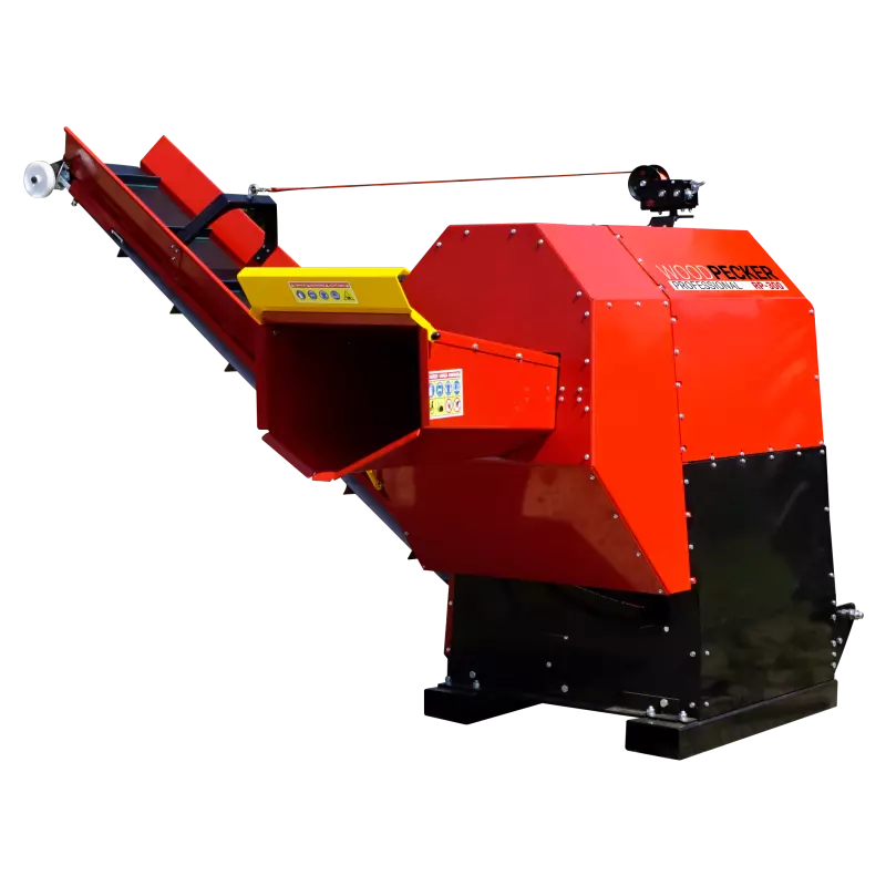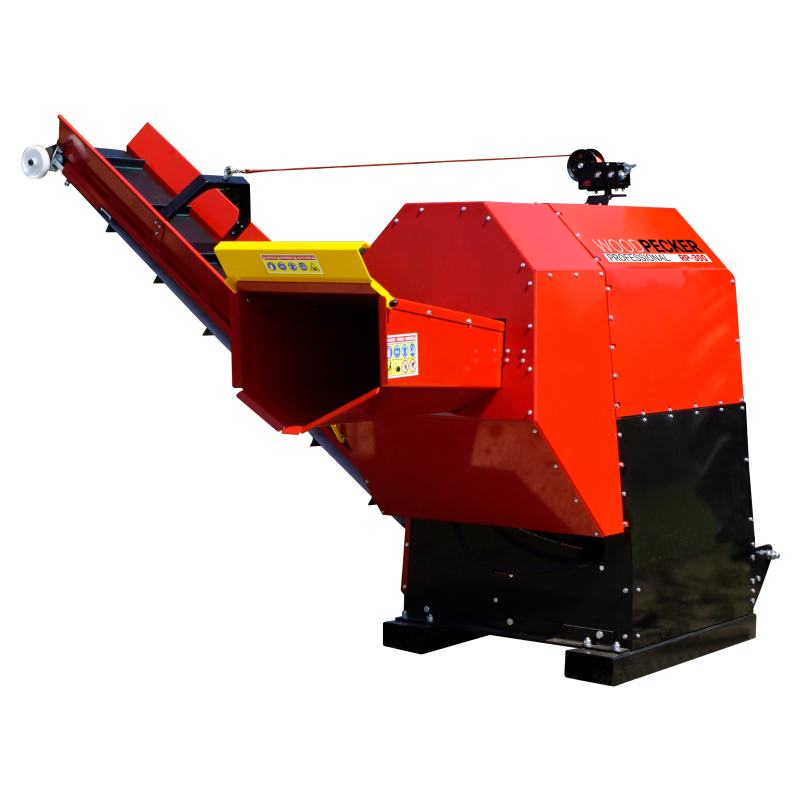Подрібнювач оснащений захисним вимикачем та кришками, що забезпечують безпечну роботу. Подрібнювач має систему виведення матеріалу із завантажувального бункера. Пристрій оснащений конвеєрною стрічкою довжиною 3 м для вивантаження матеріалу, що переробляється. Подрібнювач характеризується високою продуктивністю та високим комфортом роботи. Отримані шматки дерева відмінно підходять як паливо.