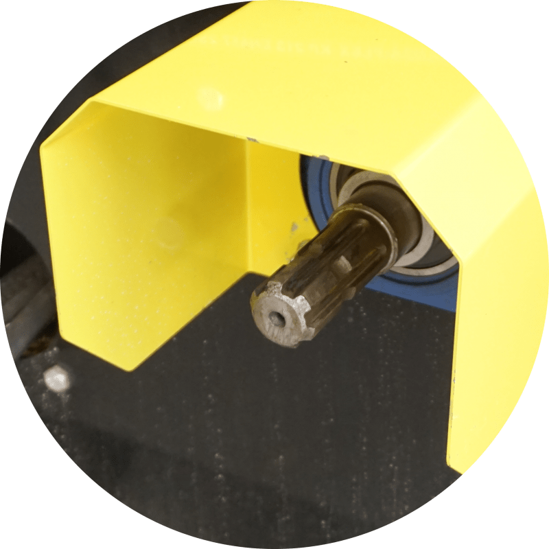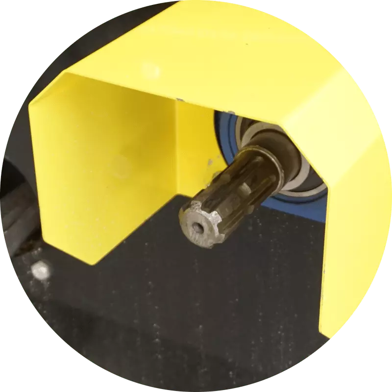 Привід подрібнювача передається через вал відбору потужності від WOM трактора (правого обертання). Ми рекомендуємо використовувати карданні вали, оснащені муфтою зі зрізним штифтом (є в нашій пропозиції), у разі перевантаження машини штифт зрізається і привід відключається.