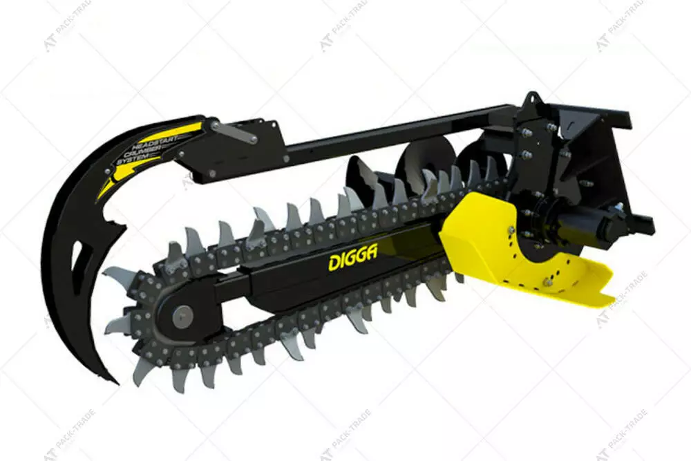 Траншеєкопач Digga BIGFOOT XD 1200. Траншеєкопач Digga Bigfoot XD 1200 сумісний з екскаваторами масою до 8 тонн, мінінавантажувачами з бортовим поворотом, екскаваторами-навантажувачами та телескопічними навантажувачами. Bigfoot XD може використовуватися для прокладання труб для зрошення, підземної енергетики та комунікацій, ремонту доріг, загального будівництва.