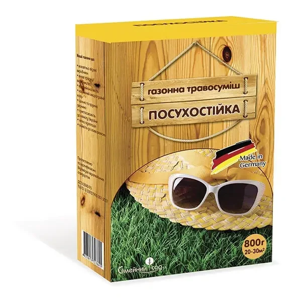 Декоративна травосуміш для використання на посушливих місцях. Не вигоряє на відкритому сонці, завдяки спеціальному складу з найбільш посухостійких злакових трав. Газон залишається зеленим навіть у посушливі роки. Склад: