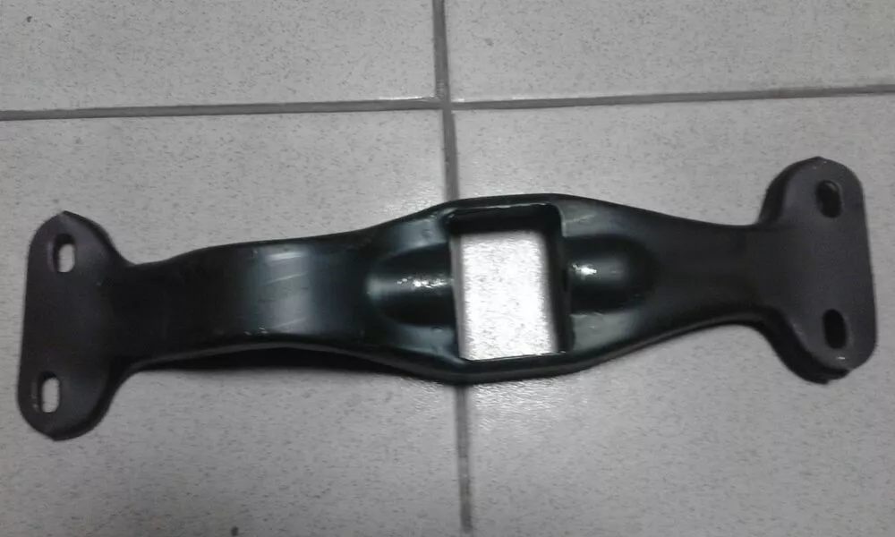 Траверса 4 ступінчастою (КПП) коробки перемикання передач на ВАЗ Нива, виробництво: Авто ВАЗ. Коробка передач двигуна необхідна для регулювання крутного моменту і частоти в широкому діапазоні. Коробка передач являє собою механізм, що складається з системи валів і декількох пар шестерень з різним передавальним числом. Кожна пара шестерень, що взаємодіють один з одним, називається передачею або ступенем. Включення в роботу певної пари шестерень здійснюється переміщенням важеля перемикання передач в салоні автомобіля. Коробка передач автомобіля виконується в окремому корпусі, розташованому за двигуном. Корпус коробки кріпиться до днища кузова за допомогою траверси і подушки. Траверса закріплюється у відповідних місцях кузова і має посадочне місце для кріплення подушки. Гумова подушка здійснює гнучку зв'язок між траверсою і корпусом коробки, згладжуючи коливання, викликані роботою механізмів і рухом автомобіля.