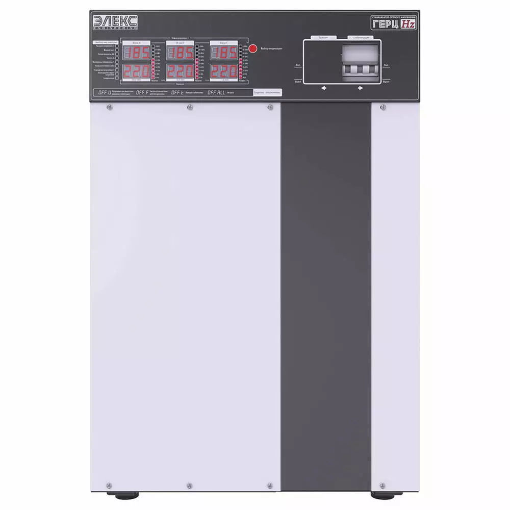 Трифазний стабілізатор напруги ГЕРЦ У 36-3/40 v3.0 призначений для роботи в електричних мережах з коливаннями напруги від 150 до 260В. У цьому діапазоні апарат гарантовано видає на виході напругу в рамках 220±1-1.5%, що забезпечується за рахунок використання 36 ступенів стабілізації відповідно. Модельний ряд Герц за потужністю може бути на 16.5, 22.5, 27, 33, 41 та 53 кВт, що відповідає робочому струму на 25, 32, 40, 50, 63 та 80А на фазу.