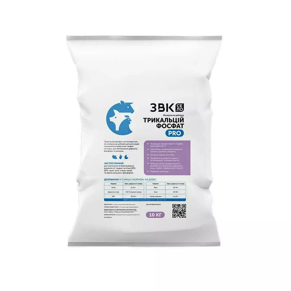 Для збагачення й балансування раціонів с/г тварин та птиці (ВРХ, ДРХ, свині, коні, птиця, нутрії та кролі) кальцієм і фосфором.