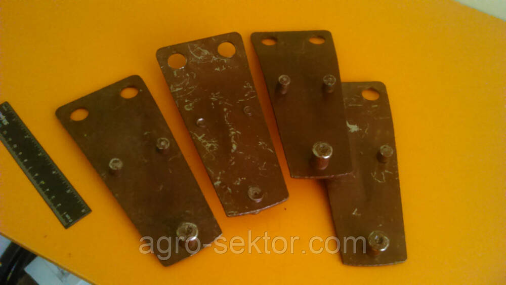 Держатель ножа двумя болтами крепится к тарелке, на держатель устанавливается нож косилки
