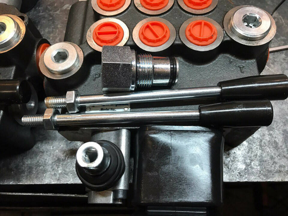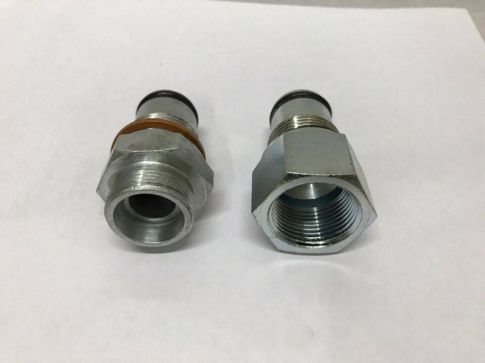 Тримач тиску С2-G1/2 для гідророзподільника Р40 (на фото зліва із зовнішньою різьбою М22х1.5)
