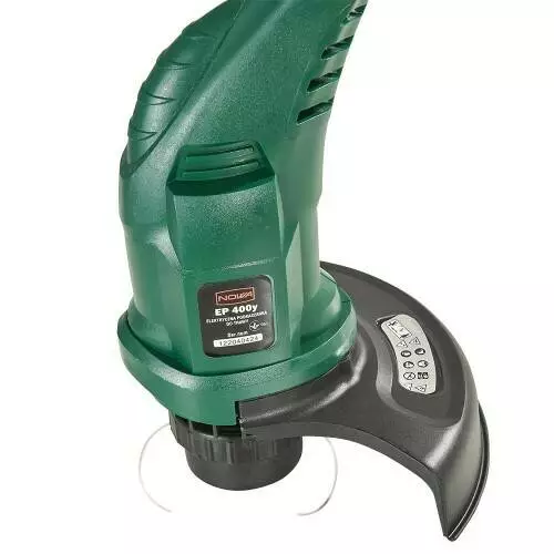 Тример оснащений електродвигуном потужністю 400 Вт, що дозволяє йому розвивати швидкість до 14000 об/хв. Завдяки цьому інструмент може швидко і ефективно обробляти траву навіть в умовах обмеженого простору. Діаметр скошування з лінією становить 200 мм, що дозволяє обробляти ділянки середнього розміру без зайвих зусиль.