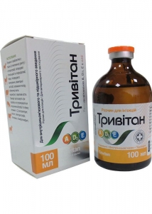 Опис Прозора масляниста рідина від світло-жовтого до світло-коричневого кольору без запаху. Склад 1 мл препарату містить: вітамін А - 10 000 МО; вітамін Д3 - 15 000 МО; вітамін Е - 20 мг. Допоміжні речовини: бутилгідрокситолуол, олія соняшникова. Фармакологічні властивості ATCvet класифікаційний код: QA11ВА Полівітаміни чисті. Вітамін А необхідний для формування структури слизових оболонок органів дихання, травлення, сечової і статевої систем, сальних і потових залоз, функціонування органа зору, попереджує дефекти розвитку плода, стимулює ріст і розвиток молодняку, неспецифічну резистентність, профілактує респіраторні і шлунково-кишкові хвороби. Вітамін Д3 впливає на формування плода, функціональну зрілість органів та обмін речовин у них, стимулює синтез білків органічного матриксу кісткової тканини та його мінералізацію, засвоєння кальцію і фосфору в кишечнику та їх реабсорбцію з первинної сечі, регулює вміст обох макроелементів у крові та кістковій тканині. Вітамін Е бере участь в обміні білків, жирів та вуглеводів, реакціях окиснення і відновлення. Він входить до складу ліпопротеїнової структури мембран усіх клітин та субклітинних структур, забезпечує їх функціональну стабільність, попереджує окиснення ліпідів? запобігає надмірному утворенню продуктів пероксидного окиснення, попереджує гемоліз еритроцитів. Вітамін Е стимулює синтез гему, який входить до складу гемоглобіну, міоглобіну та ферментів тканинного дихання, сперміогенез, репродуктивну функцію самок і самців, запобігає ембріональній смертності, забезпечує розвиток плода. Застосування Профілактика і лікування А- і D-гіповітамінозів, аліментарної та вторинної остеодистрофії, кетозу, рахіту, післяродової гіпокальціємії та гіпофосфатемії, перед- і післяродового залежування, уролітіазу, бронхопневмонії, шлунково-кишкових хвороб, білом'язової хвороби, субінволюції матки, затримання посліду, метриту, переломів кісток, стимуляція росту і розвитку молодняку та репродуктивної функції. Дозування Препарат з профілактичною метою вводять внутрішньом'язово або підшкірно один раз на 7 діб, з лікувальною метою - внутрішньом'язово один раз на 7 діб до одужання, в подальшому (за необхідності) препарат вводять у профілактичних дозах. Щоденно препарат вводять у зазначених профілактичних дозах. Дози препарату Тривітан розраховані за вітаміном Д3 Профілактична Лікувальна, мл, 1 раз на 7 діб Щодобово орально Корови сухостійні 5,5-6,0 11,0-12,0 1,2-1,5 Корови дійні 9,0-10,0 18,0-20,0 1,5-2,0 Молодняк великої рогатої худоби (на 100 кг маси тіла) 2,5-3,5 5,0-6,0 0,6-1,0 Кобили жеребні 3,0-4,0 6,0-7,0 0,8 Кобили лактуючі 4,5-5,0 9,0-10,0 1,0 Свиноматки поросні 1,0-1,5 2,0-3,0 0,15-0,20 Свиноматки лактуючі 2,0-2,5 4,5-6,0 0,40-0,50 Поросята масою тіла 20-40 кг 0,4-0,5 1,2-1,5 0,05-0,10 Вівцематки кітні 0,5-0,7 1,0-1,5 0,10 Вівцематки лактуючі 0,8-1,0 1,5-2,0 0,20-0,25 Ягнята віком 4-6 міс. 0,25 0,50-0,65 0,05 Кози 0,4-0,5 1,0-1,5 0,08-0,10 Собаки (масою тіла 40 кг) 0,25-0,30 1,0-1,5 0,05-0,07 Протипоказання Відсутні. Застереження При застосуванні препарату раціони повинні бути збалансовані за кальцієм, фосфором, цинком, кобальтом, міддю і марганцем. Форма випуску Рідина у флаконах з темного скла, закритих гумовими корками під алюмінієвими обкатками, об'ємами 10, 50, 100 мл. Зберігання Сухе темне, недоступне для дітей місце при температурі від 5 до 15 °С. Термін придатності - 2 роки. Для застосування у ветеринарній медицині!