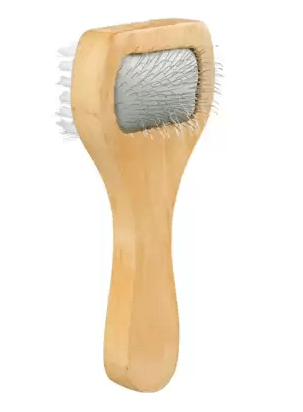 Компактна дерев'яна двостороння щітка-пуходерка для собак, котів і гризунів. Волосяний покрив кота або невеликого песика стане здоровішим і блискучішим завдяки видаленню мертвих волосків металевими зубцями з одного боку і приємному масажу нейлоновими щетинками з іншого боку щітки.