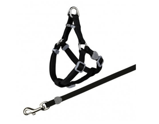 Легкі замочки дають змогу швидко надіти шлейку для котів, розмір якої регулюється (26-37см). Ширина 10мм. Повідець має довжину 120см.