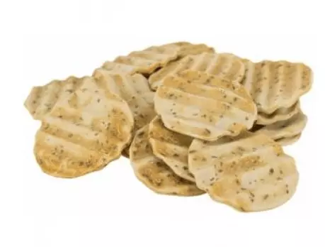 Виготовлені у вигляді хрустких чіпсів з куркою