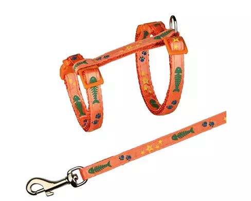 Trixie Шлейка з повідцем для котів - шлейка з повідцем зроблені з міцного нейлону з пластиковими пряжками і малюнками лапок, рибок і зірочок.