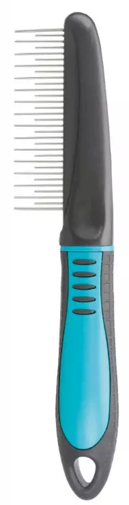 Материал: пластик, металл. Размер: 22 см. Почему стоит купить: изготовлена из высококачественных материалов подходит для ухода за прямой короткой и средней шерстью закруглені зубці ручка з покриттям Гребінець разнозубая для собак і кішок Тгіхіе (Тріксі) має металеві закруглені зубці, які не травмують шкіру, і пластмасову ручку з нековзним гумовим покриттям.