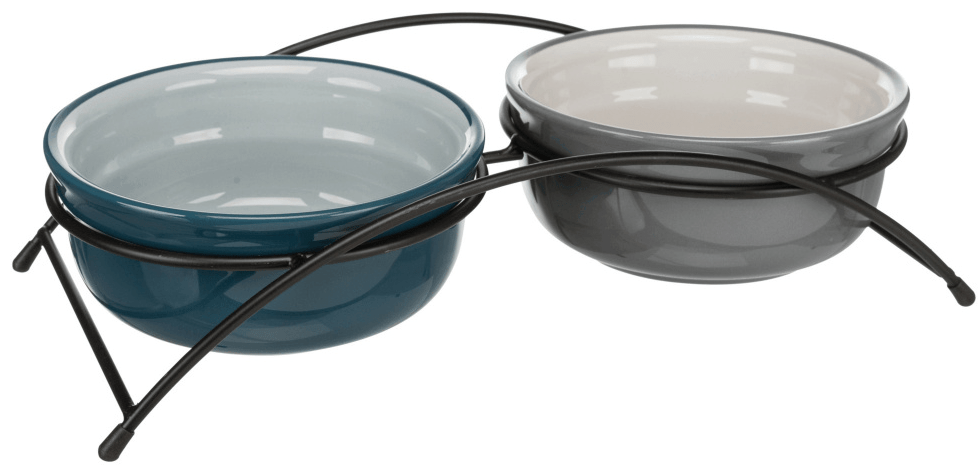 2 керамічні миски з підставкою 2 × 0,25 л / ø13 см металева підставка з порошковим покриттям, чорна підставка не ковзає завдяки гумовим ніжкам