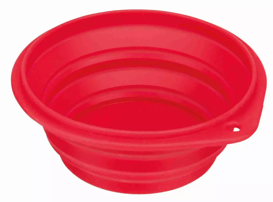 Миска об'ємом 0,5 літра і діаметром 14 сантиметрів виготовлена з міцного силікону. Зносостійка, легко складається. Займає дуже мало місця, ідеальний варіант для подорожей. Можна використовувати і для їжі і для корму.