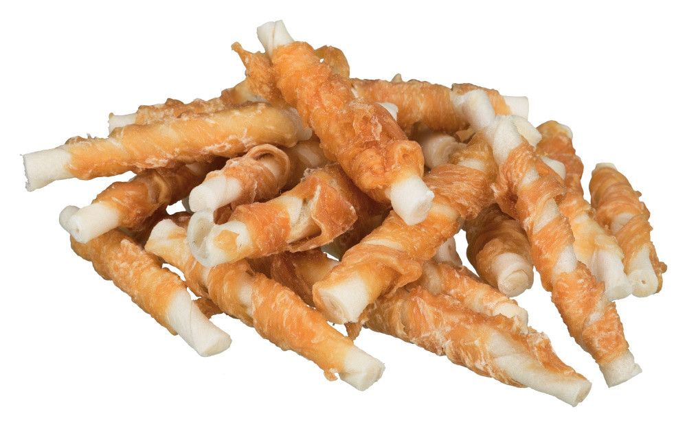Жувальна паличка Trixie Denta Fun - смачні і корисні ласощі для собак. Включає в себе смужки поживного і ароматного курячого філе. Чудово підійде в якості відволікання для вашого вихованця. Залиште паличку вашій собаці перед відходом з будинку – і можете не переживати за стан меблів та домашніх речей: з такими ласощами вашому улюбленцю точно буде чим зайнятися.