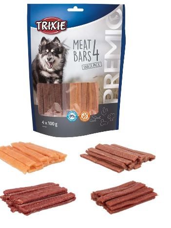 Ласощі для собак Trixie Premio 4 Meat Bars (курка/качка/ягня/лосось)) від німецького бренду Trixie – це продукт, гармонічно поєднуючий в собі смакові якості і корисні речовини. У своєму складі мають необхідні для тварини вітаміни. Виробляються без додавання консервантів. Це ласощі обов'язково сподобаютиься Вашому улюбленцю.