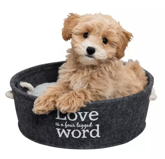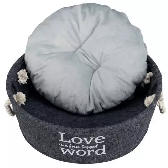 Ліжечко Trixie Lian для кішок і маленьких собак відрізняється незвичайним дизайном, вона виконана з штучного повсті, з чарівними мотузяними ручками і витонченої написом Love is a four legged word.