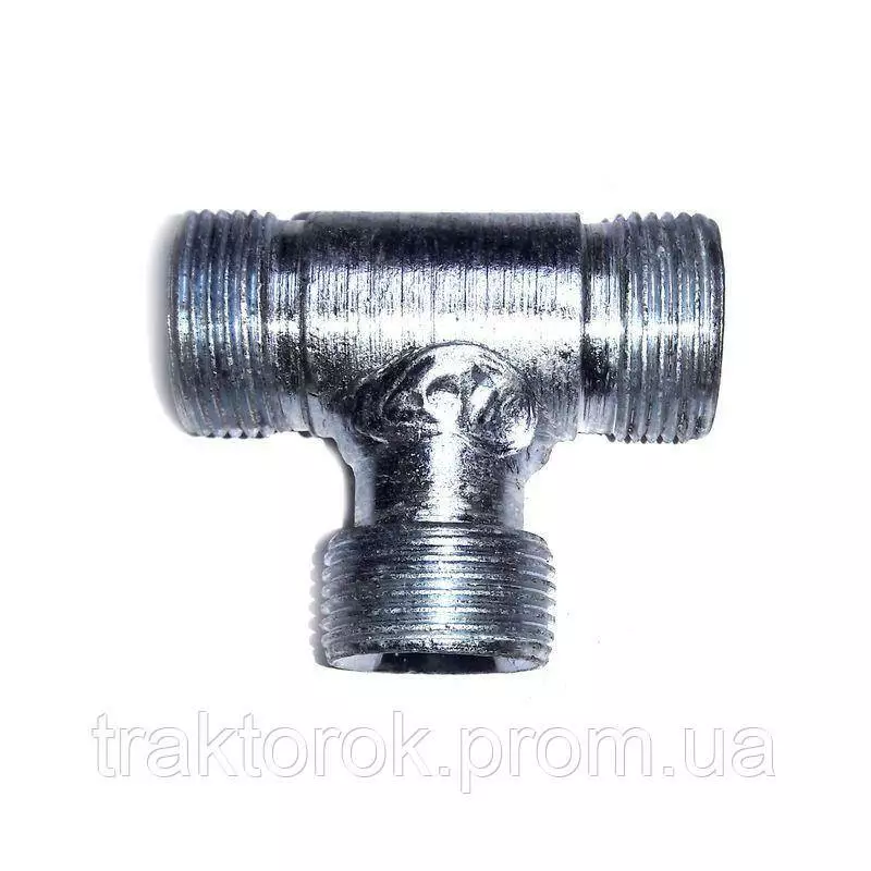 Трійник-штуцер виконаний з різьбовим з’єднанням і відповідає стандартам якості, що гарантує довговічність та герметичність при роботі під високим тиском. Код S27 вказує на конкретну модель з визначеними розмірами та типом з’єднання, придатну для промислових та сільськогосподарських систем.