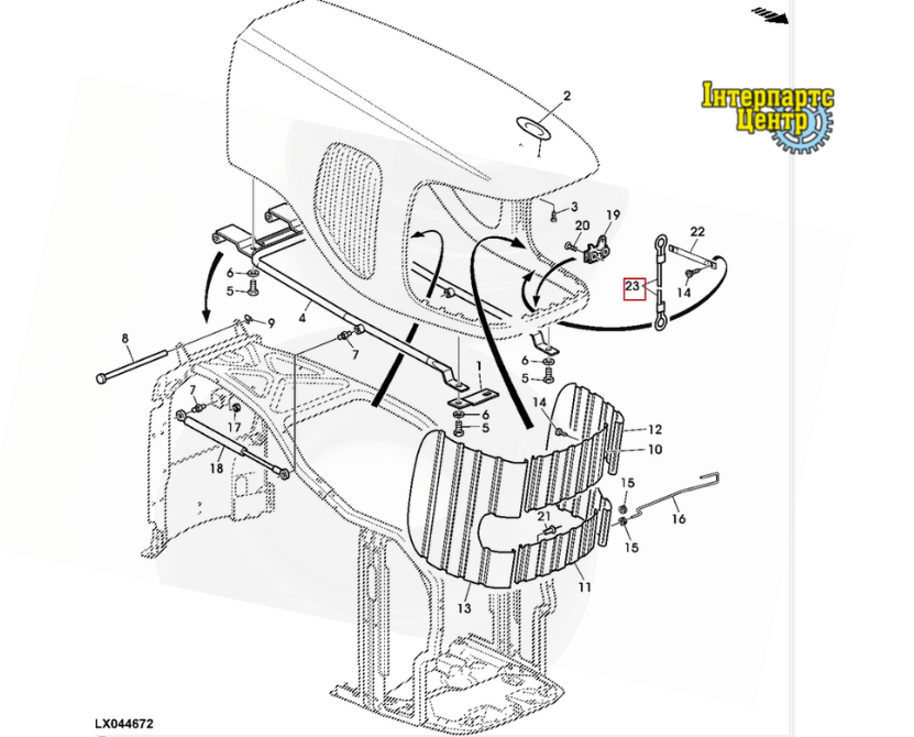Трос відкриття капоту трактора John Deere.