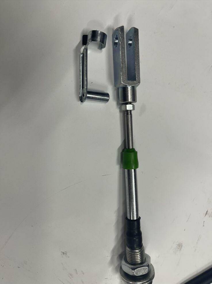 Трос довжиною 1 метр з наконечником під вилку, використовується для під'єднання до гідророзподільника тросовому важелю. Трос з одного боку має різьблення, з іншого боку - вилку. Додатково можна придбати комплект підключення троса до гидрораспределителям серії Р40 і Р80.