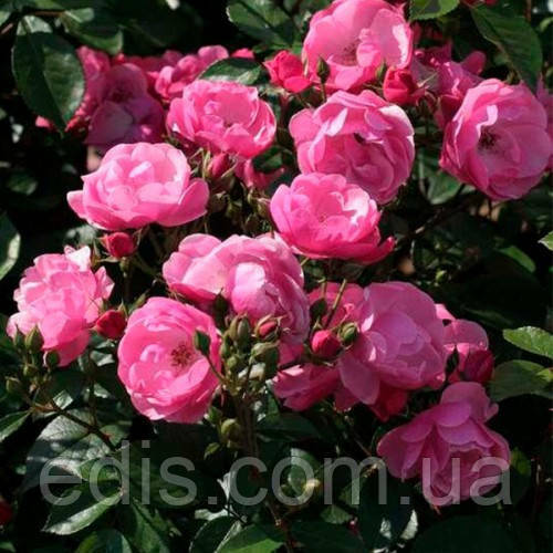 · цветки полумахровые, чашевидные, розовые, до 6 см в диаметре, содержат до 25 лепестков;