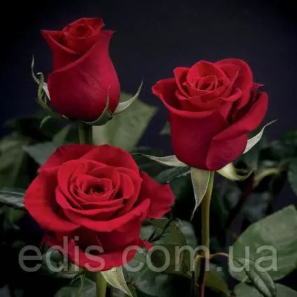 Саджанці чайно-гібридних троянд Фрідом(Freedom) Цей сорт завоював визнання серед вирощують троянди на зріз завдяки красивому бутону, стійкості в зрізку і при транспортуванні і довгих стеблах. Кусты этих роз рекомендуется сажать в затененных местах, но не в абсолютной тени. Любит слегка пониженные температуры. Рекомендовано выращивать кусты роз этого сорта при температуре не выше 30 градусов, в таком случае на кусте цветы будут держаться дольше. Цвет у роз сорта Фридом между темно-бордовым, бархатным и бордово-красным. Квітки цього сорту махрові (близько 50 пелюсток). Бутони витягнуті, елегантні, високі (10-12 см). Діаметр квітки близько 10 див. Мають легкий приємний аромат. Кущі близько метра заввишки, прямостоячі, швидко відростають. Лист яскраво-зелений, блискучий, великий. Ще одна перевага цього сорту – невелика кількість шипів. Стійкість до хвороб висока. Стійкість до морозів середня