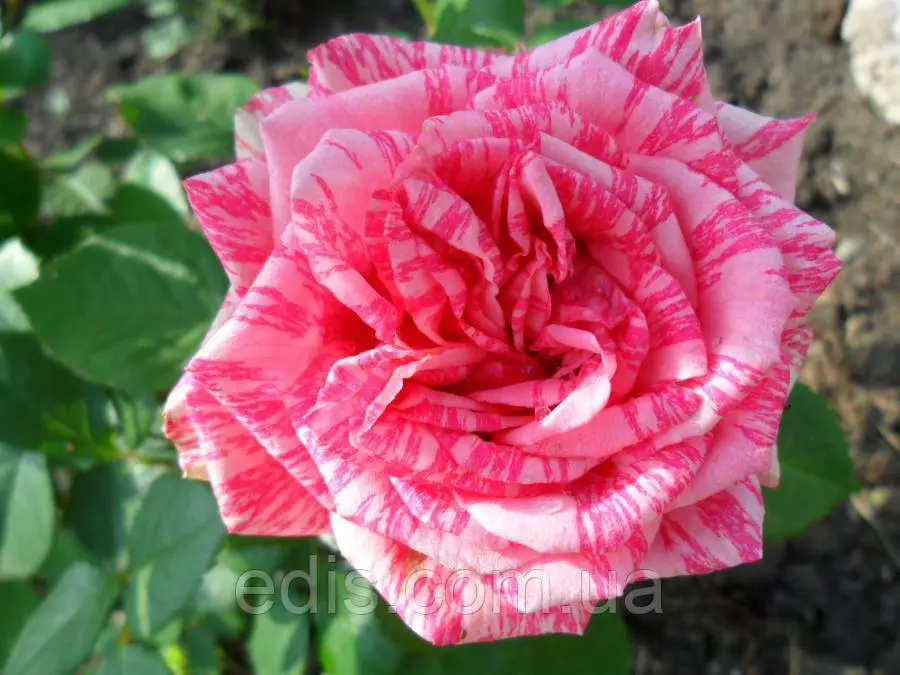 Саджанці чайно-гібридних троянд Пінк Интуишин (Pink Intuition) Бутони Pink Intuition густомахрові, досить великі, що досягають в діаметрі від 10 до 12 см, з приємним ароматом. Їх забарвлення нагадує структуру мармуру. Цей візуальний ефект виникає в результаті вдалого поєднання ніжно - рожевого фону з яскраво-рожевими, або навіть малиновими смужками, створюють враження, що хтось недбало, на швидку руку, махнув пензлем, намалювавши їх на ідеально підходить тлі. Троянда з досить високою стійкістю до хвороб та морозів. Характеризується як рясно квітуча, має тривале цвітіння. Кущі цього сорту мають висоту від 90 до 110 см, при цьому в ширину досягають 70 див. Цвітіння одиночне (по одній квітці на квітконосі). Середня кількість шипів. На завершення хочеться додати, що келихоподібна форма квітки, зі злегка загнутими назовні пелюстками і насиченою яскравою листям відмінно виглядає як в одиночних, так і в групових посадках.