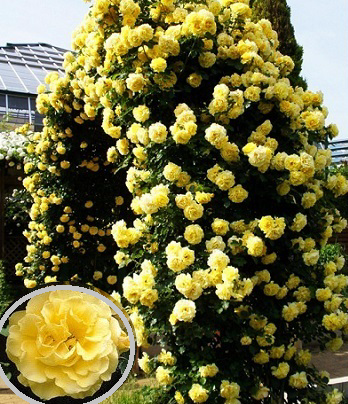 Квіти цього сорту спочатку яскраво-жовті, келихоподібні, але потім розкриваються в напівмахрові з хвилястими пелюстками 8-10 см в діаметрі, при повному розквіті мають здатність змінюватися на лимонно- кремові. Квіти всіх стадій розпуску знаходяться на кущі одночасно, створюючи цікавий двоколірний ефект. Пагони товсті, листя блискуче, яскраво-зелене. Молоді кущі досить гіллясті, і при бажанні можна здійснювати обрізку. Гарні в зрізку.