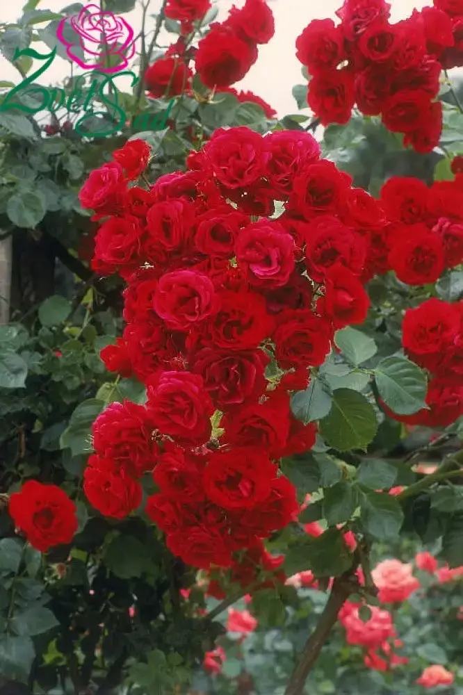 Троянда плетиста Нахеглут (Naheglut) – це потужний, розлогий кущ, що досягає 3-4 метрів у висоту, з оксамитовими, темно-червоними квітами діаметром 7-10 см, зібраними в суцвіття по 2-5 штук. Вона має приємний, легкий аромат, рясно цвіте протягом усього літа, а глянсове темно-зелене листя ефектно контрастує з яскравими квітами.