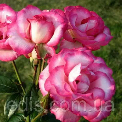 Роза в'юнка Хендель ( Handel ) Квітки двох-кольорового забарвлення: кремовими, вигоряючими до білих, з малиновим або рожевим краєм. Це незвичайна комбінація полураскрытый квітка Handel має дуже красиву форму, а колірний контраст один з найкрасивіших серед троянд. Кольори особливо яскраві на самих краях пелюсток, що підкреслює форму квітки. Пелюстки хвилясті.Квітки середні або великі, 8-10 см, махрові, ароматні. Handel краще всього відчуває себе в суху прохолодну погоду.