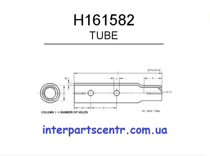 Труба поворотного механізму 161582,H161582 JOHN DEERE