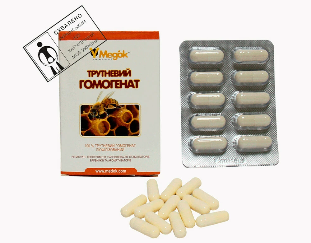 Трутневий гомогенат насичений гормонами і вітамінами, містить тестостерон, прогестерон, пролактин і естрадіол. Тому він застосовується для лікування захворювань чоловічої статевої сфери, аденоми простати, простатиту, імпотенції, а також безпліддя, причому як у чоловіків, так і у жінок.