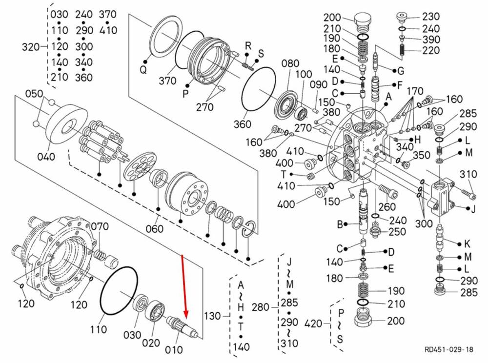 RP801-72550 Центральний вал Kubota U55. Купити запчастини для спецтехніки Kubota можна у Києві безпосередньо з нашого складу. Всі запчастини в мости та КПП ми поставляємо безпосередньо від виробника. Ремонт мостів та трансмісії проводить наш сервісний центр з ремонту спецтехніки та двигунів (Київ, Україна).Центральний вал гідромотора ходу KUBOTA U55 RP801-72550