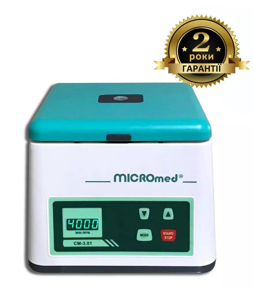 MICROmed СМ-3.01 — настільна компактна лабораторна центрифуга періодичної дії, призначена для розділення біологічних рідин на фракції різної щільності. Вона розрахована на 12 пробірок та забезпечує стабільну роботу при максимальній швидкості до 4000 об/хв, що робить її придатною для щоденного використання у клініко-діагностичних та наукових лабораторіях.