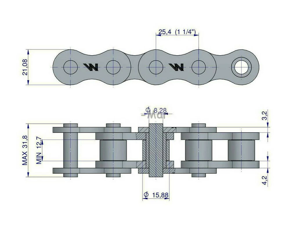 Ланцюг однорядний (L=1968,5мм, t=31.75, 62 ланки) Sipma Z-279