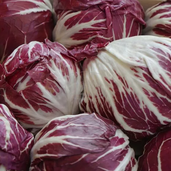 Цикорий - это листовой овощ на осенний сбор. Растение формирует округлые, плотные головки. Листья красного цвета с белыми прожилками. Интенсивнись окраски увеличивается с уменьшением светового дня. Листья цикория имеют слегка пикантный вкус, богатый витаминами и минеральными веществами, положительно влияет на образование эритроцитов. Полезен для больных сахарным диабетом и людей с нарушенным обменом веществ. Рекомендуется для потребления в свежем виде (приготовление салатов), а также при тушении, варке.